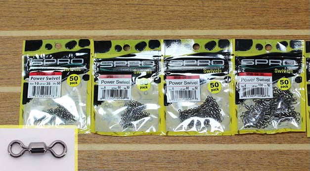 Power Swivels. These little swivels are correctly named; you won't believe the strength in such a tiny piece of hardware. The size 10 Spro Power Swivel is rated to thirty-pound test, is barely a quarter if an inch long and as thick as a pencil lead! If you need tiny, powerful swivels, these Spro swivels will supply all the Power you need. Try the number 10 size in your dropshot rig to eliminate line twist and the larger sizes will hold up in any rig, even if you're using high test braided line. The price is reasonable enough for you to keep plenty of these Power Swivels on hand.